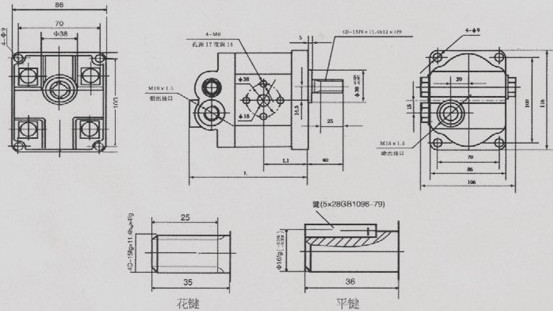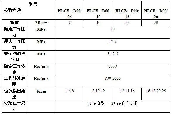 用途与说明 HLCB-D型恒流溢流泵主要用于工程机械、农业机械等各种车辆的液压动力转向系统,可为全液压转向器或液压助力器提供恒定不受发动机(或油泵)转速影响的流量,以保证液压动力转向系统可靠、稳定地工作,恒流流泵是在CBN—F300系列齿轮泵上集成恒流溢流阀而成。结构紧凑,使用方便。该泵基型分为四种规格,按恒流量分九种流量。国际上,这种恒流溢流泵已成为各种车辆液压动力转向系统用泵的主要形式。 型号说明 外形图 性能参数